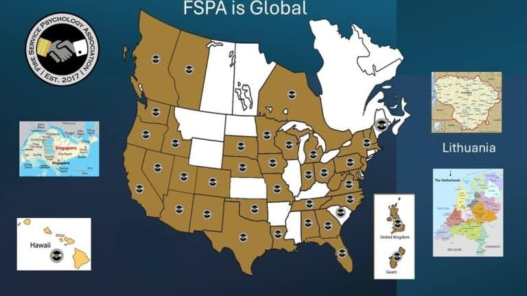 The Fire Service Psychology Association is now represented in 40 US States and Guam (A U.S. Territory), 3 Canadian provinces, and four countries, the United Kingdom, Lithuania, The Netherlands, and Singapore!