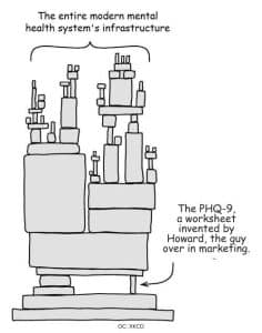 I just want that to sink in: our primary measure of psychological wellness is a worksheet that was designed to sell antidepressants.